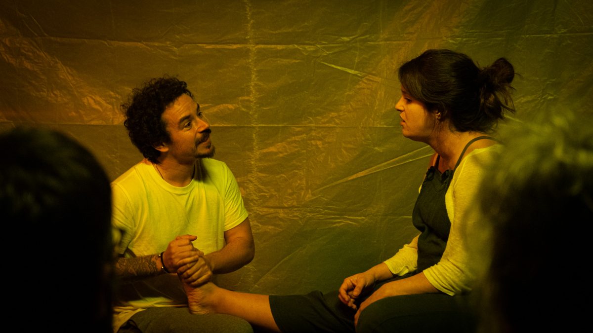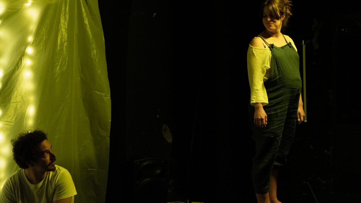 Júlia i Pau són una parella que s’enfronten a l’aventura més èpica: la maternitat. Als lavabos viuran alguns dels moments més importants d’aquest viatge en què fregaran amb la punta dels dits la felicitat més absoluta, però també s’enfonsaran en el tràngol més fosc de la seua vida. Reviurem moments desordenats de la seua història. Records que són eufòria. També records de pur dolor. Ells transiten per aqueix caos buscant la superfície. Què passa quan l’origen de la vida és, alhora, també el final?